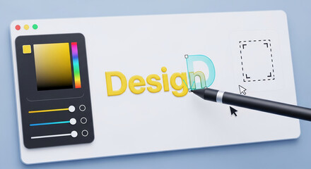 Stylus edits yellow "Design" word on digital interface, showcasing design process, creativity and digital art, ideal for graphic design or technology websites