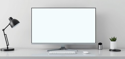 Clean minimalist presentation screen mockup on desk, modern, design