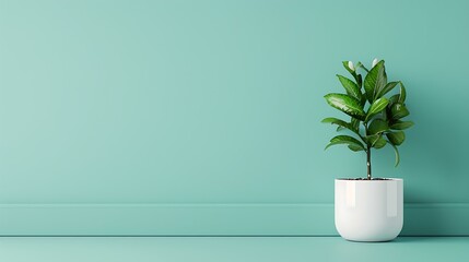 A minimalist business banner template with a clean, professional look. The design features a single green plant in a white pot against a soft teal background, exuding simplicity and elegance.