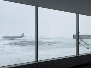 Snowy Airport Runway View from Terminal Window