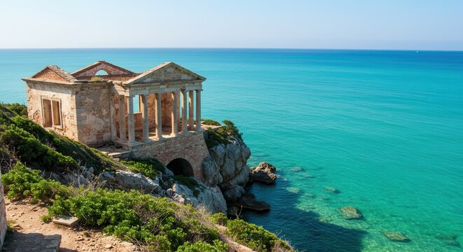 Temple of jupiter anxur ruins on the coast of italy