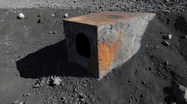 Abstract metallic rock formation on textured background.