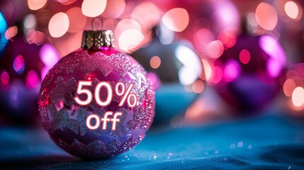 Festive christmas tree ornament featuring 50  off text for holiday sale promotions and marketing
