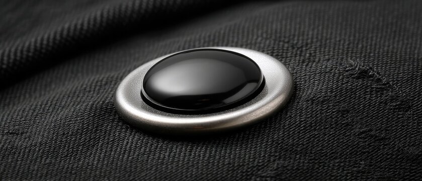 Close-up view of a button on a jacket with detailed texture and grayscale background, featuring a large area for a text title above the button