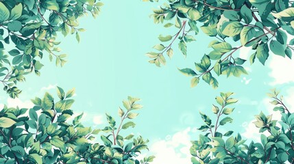 Healthy green bio background with blurred foliage, sunlight, and copyspace for text or ads.