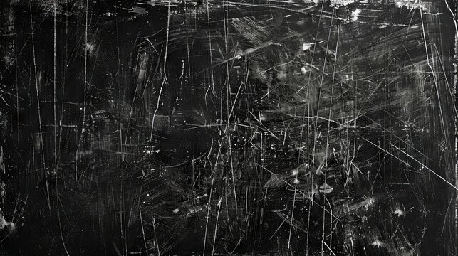 Black scratched grunge background with distressed film texture and spacious empty area for text or design elements