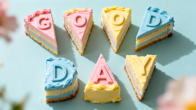 Colorful cake slices with text