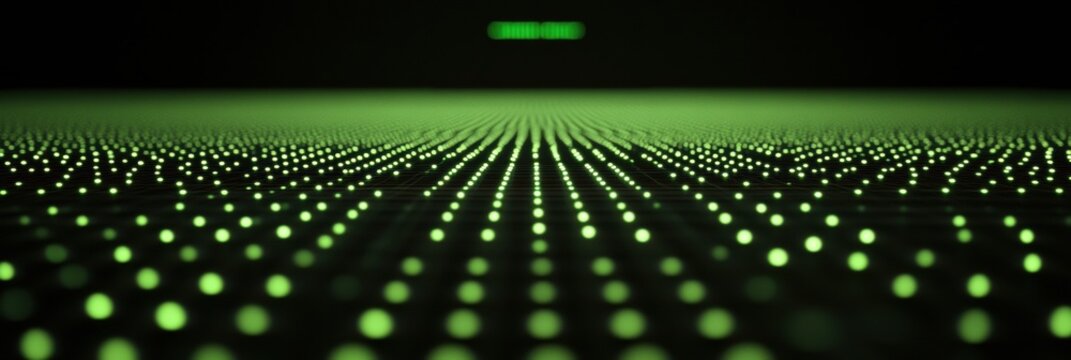 Futuristic data visualization dashboard with neon green line chart