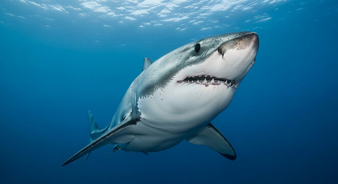 Close-up of realistic ai-generated shark underwater