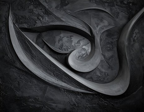 An abstract, monochromatic photograph featuring flowing, curved lines and shapes, creating a dynamic and textured composition