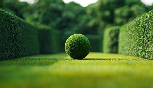 Tessellated neon cuboid corridor creating kaleidoscopic installation with glossy sphere