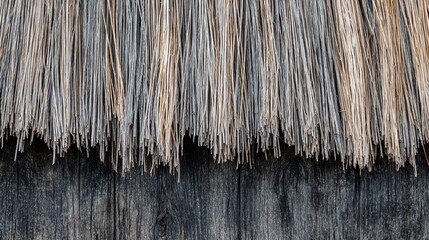 Close Up of Thatch Roof with Wooden Surface Background in Natural Lighting