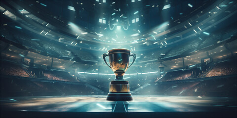 Silhouetted fans cheering in stadium with colorful confetti falling