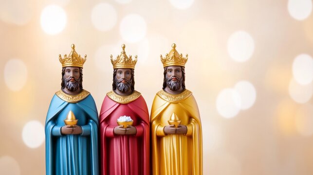 Three Wise Men statues standing proudly in front of a nativity scene.