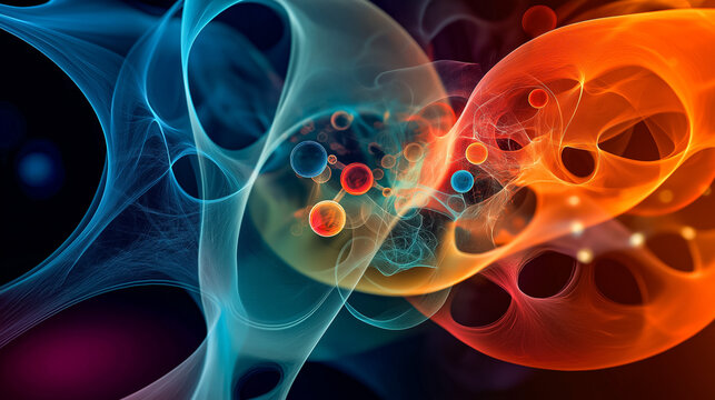 Abstract depiction of atoms on dynamic background