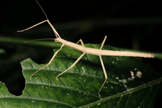 High-resolution closeup shot of a Phobaeticus kirbyi, a species of stick insect