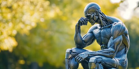The thinker statue in a pensive pose, a classical sculpture