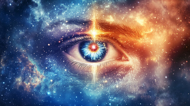 A mystical eye opening in the forehead as kundalini energy reaches the third eye