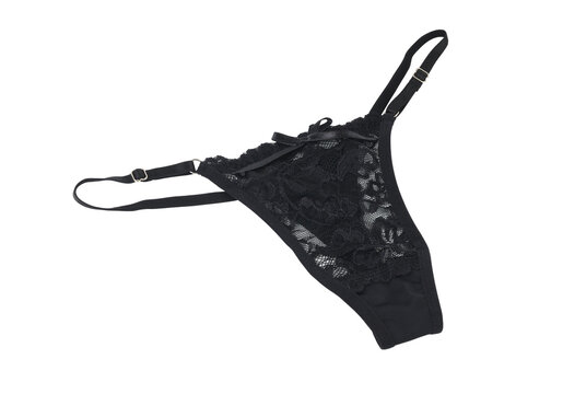 Dark blue women's lace thong isolated on white background. Elegant panties close-up. fashion underwear