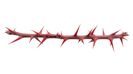Thorny branch isolated on white, long red thorns creating a striking visual, perfect for nature-themed designs or motifs. Isolated on white background or PNG
