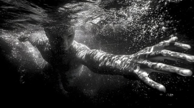 A serene and thought provoking image of a hand partially submerged in water creating a surreal and contemplative atmosphere