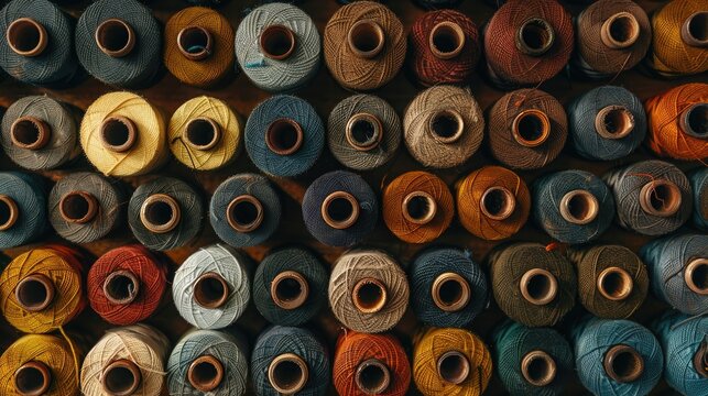 Colorful spools of thread in a variety of vibrant colors, colorful, spools, thread, sewing, crafts, rainbow, vibrant
