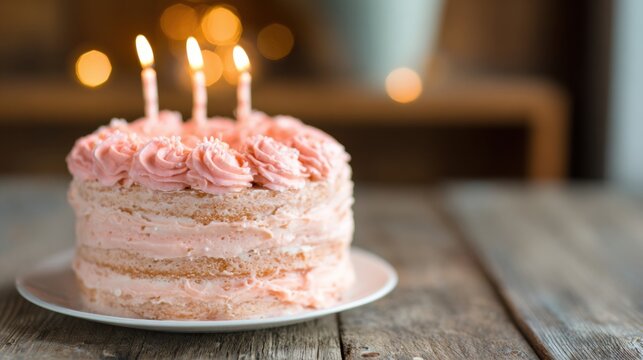 Celebrating 25 with golden candles on chocolate layer cake and cream frosting, cozy glow
