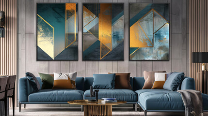 three wall art frame with boho abstract art illustration collection set, home decor minimal mock up idea