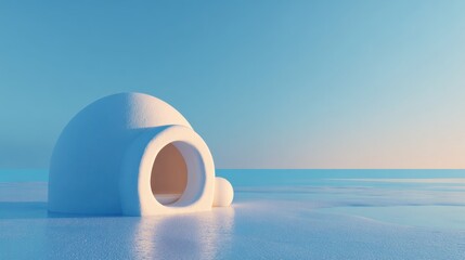 Igloo on Seaside during Calm Sunset with Clear Blue Sky