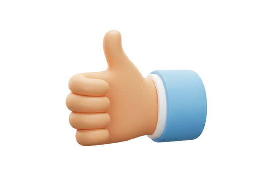 Isolated 3D Render of a Cartoon Hand Giving a Thumbs Up for Approval