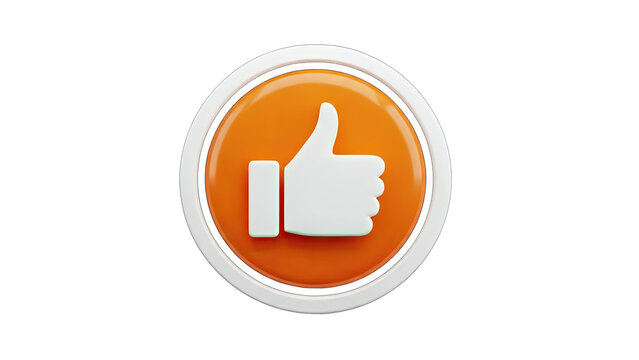 3D Like Icon with Thumb Up on Orange Circle, Isolated
