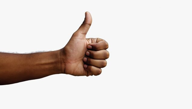 African American hand giving thumbs up gesture, expressing positive sentiment against minimal white background