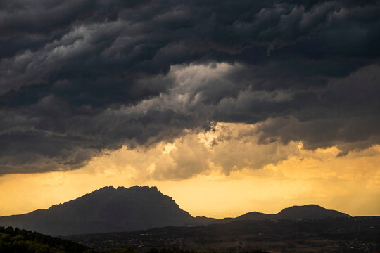 Lightning thunderstorm flash in the mountains. Concept on topic weather, cataclysms (hurricane, Typhoon, tornado, storm)