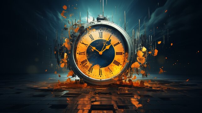 Close-up view of clock with its hands pointing at midnight, symbolizing  moment of transition urgency or new beginnings.