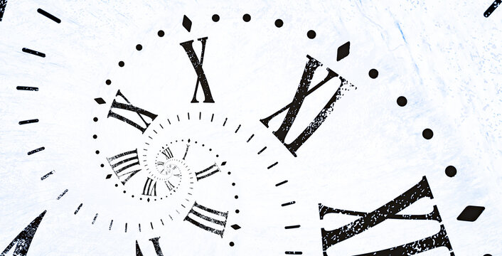Droste effect background with infinite clock spiral. Abstract design for concepts related to time.