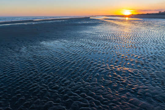 Sunset Over The Tidal Flats of Folly Beach, Folly Island, South Carolina, USA