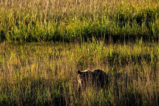 Brown bear (Ursus arctos) in tidal flats meadow; Lake Clark National Park; Alaska