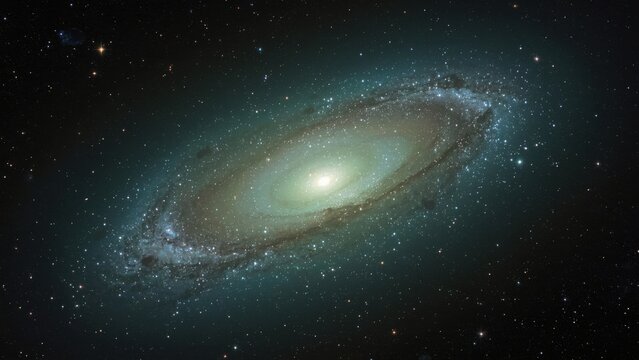 Illustration of Jade-Colored Tidal Tails Flowing Gracefully Through a Teal-Hued Galactic Collision in Deep Space