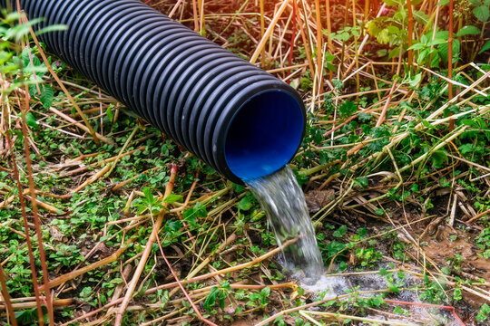 Gutter, gutter, drain for water after rain on the sidewalk. Installation of paving slabs and drainage systems. Sidewalk construction.  Selective focus.