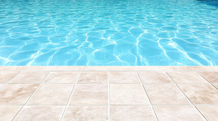 Bright blue pool water with tiled pool deck and sparkling sunlight reflections
