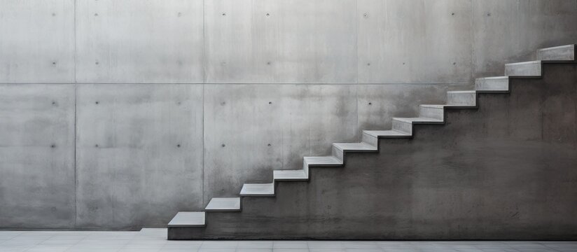 Staircase with black marble stone stairs viewed in perspective. Abstract modern architecture or interior photo in minimalism style.