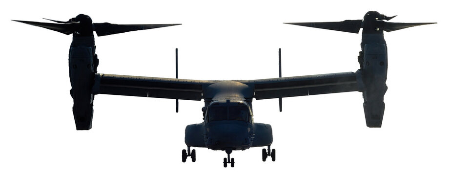 H�licopt�re tiltrotor puissant vole fond blanc lumi�re intense. AI Generated