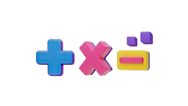 3D Math Symbols: Plus, Multiply, Minus