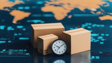 Hands holding clocks over a map, symbolizing global time zones and time management.