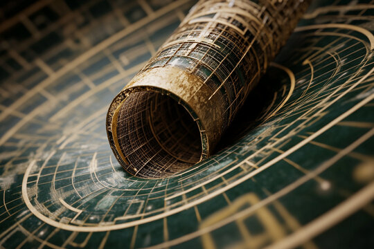 Spatial representation of time distortion illustrated with intricate patterns and geometric shapes in a modern composition