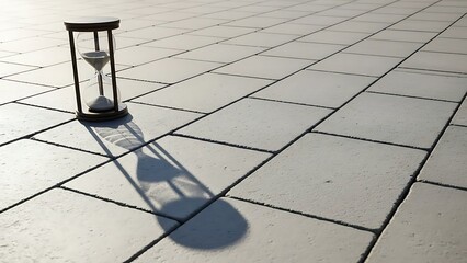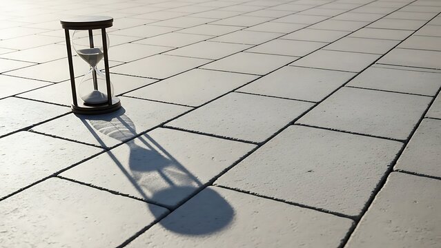 Hourglass on Tiled Floor with Shadow in Sunlight