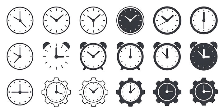 Set of Minimalist Clock and Alarm Icons for Time Management Schedule and Workflow Design