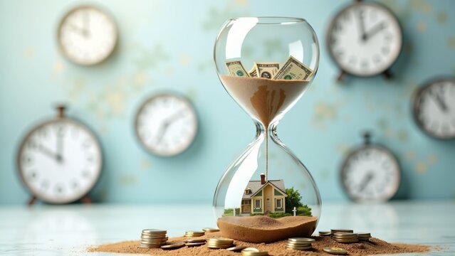 Time and money concept with timer on dollar bills