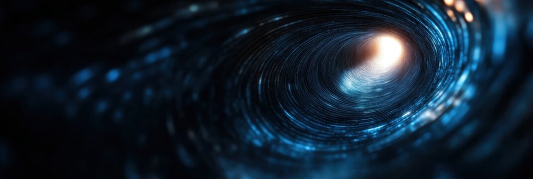 An abstract image presents a swirling cosmic spiral with vibrant colors, depicting the mysterious and enchanting nature of space and its endless exploration possibilities.