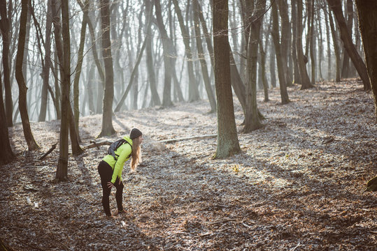 Woman Feeling Tired, Relaxing After Running Outdoors